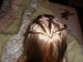 Just another one. Pretty darn cute, right? See if you can make them yourself. This is the one I used in her hair today. It would also be cute if you made the strands smaller & so you could make 2 bows for pigtails.